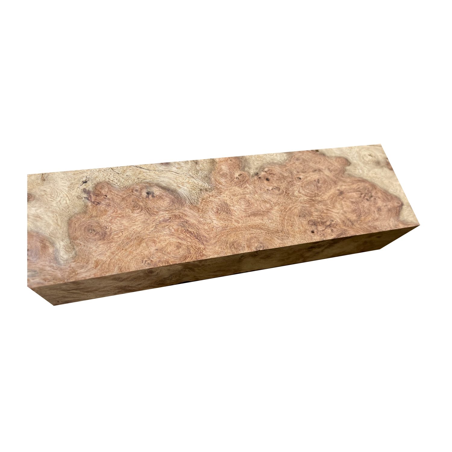 - Knife blanks are cut from premium-seasoned burls.